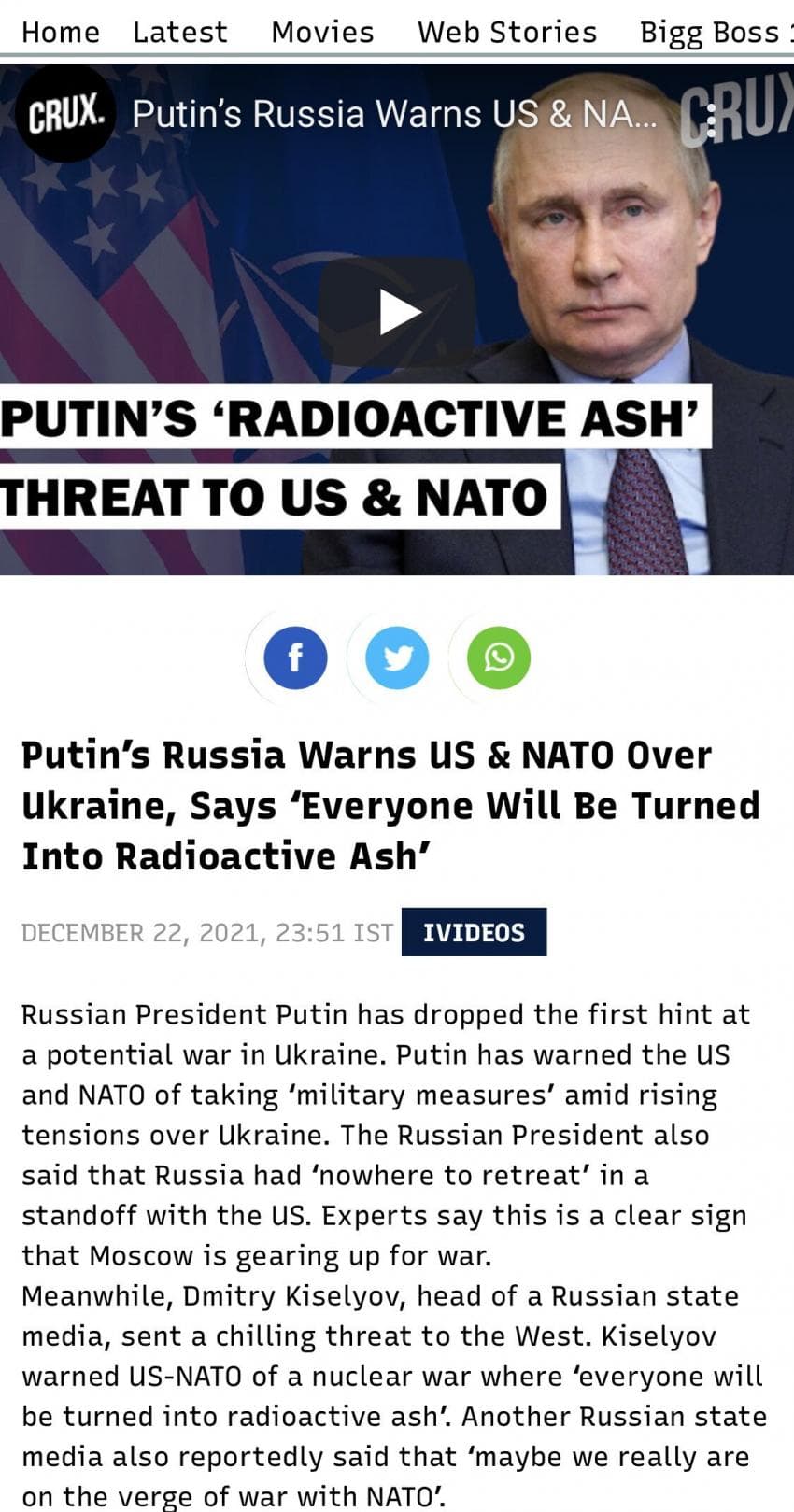 단순히 우크라이나가 나토 가입하는 것을 막기 위함이 아니라